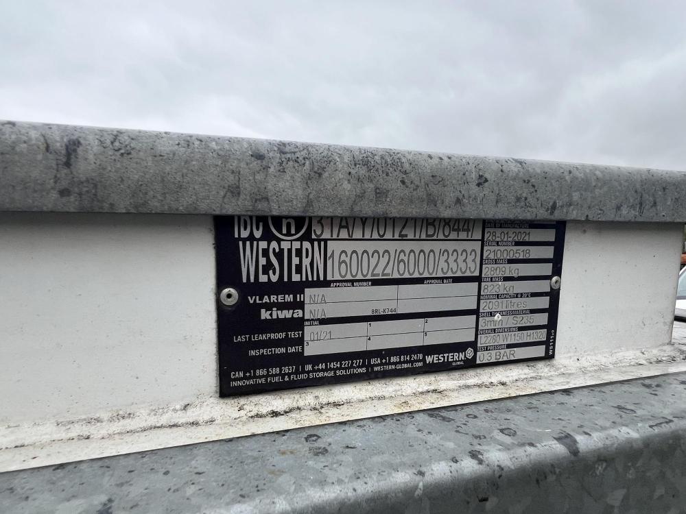 Western S20TCG Site Tow Fuel Bowser Year: 2021 2091 litres 0.3 bar gross mass: 2809 kg Tare mass: 823 kg